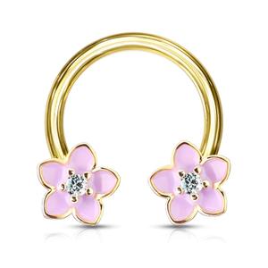 PINK FLORAL GOLD CIRCULAR BARBELL - 12MM