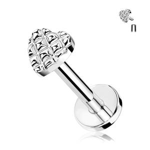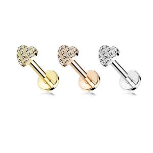 DIAMOND CUT LOVE HEART FLAT BACK LABRET STUD