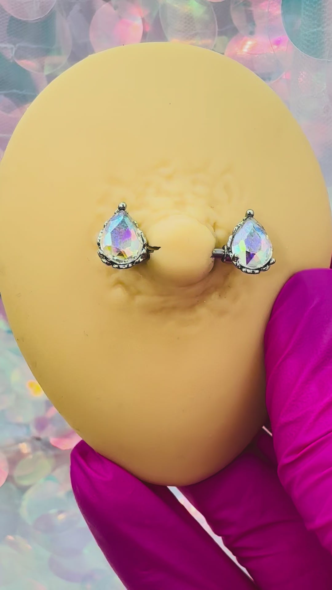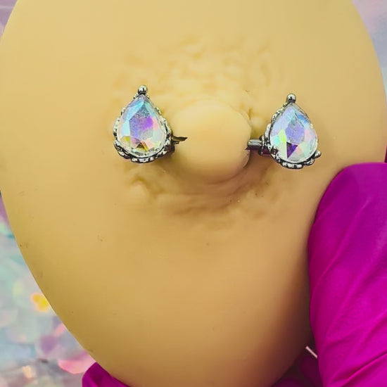 AURORA CRYSTAL TEARDROP NIPPLE BARBELL - 12MM - 14 GAUGE