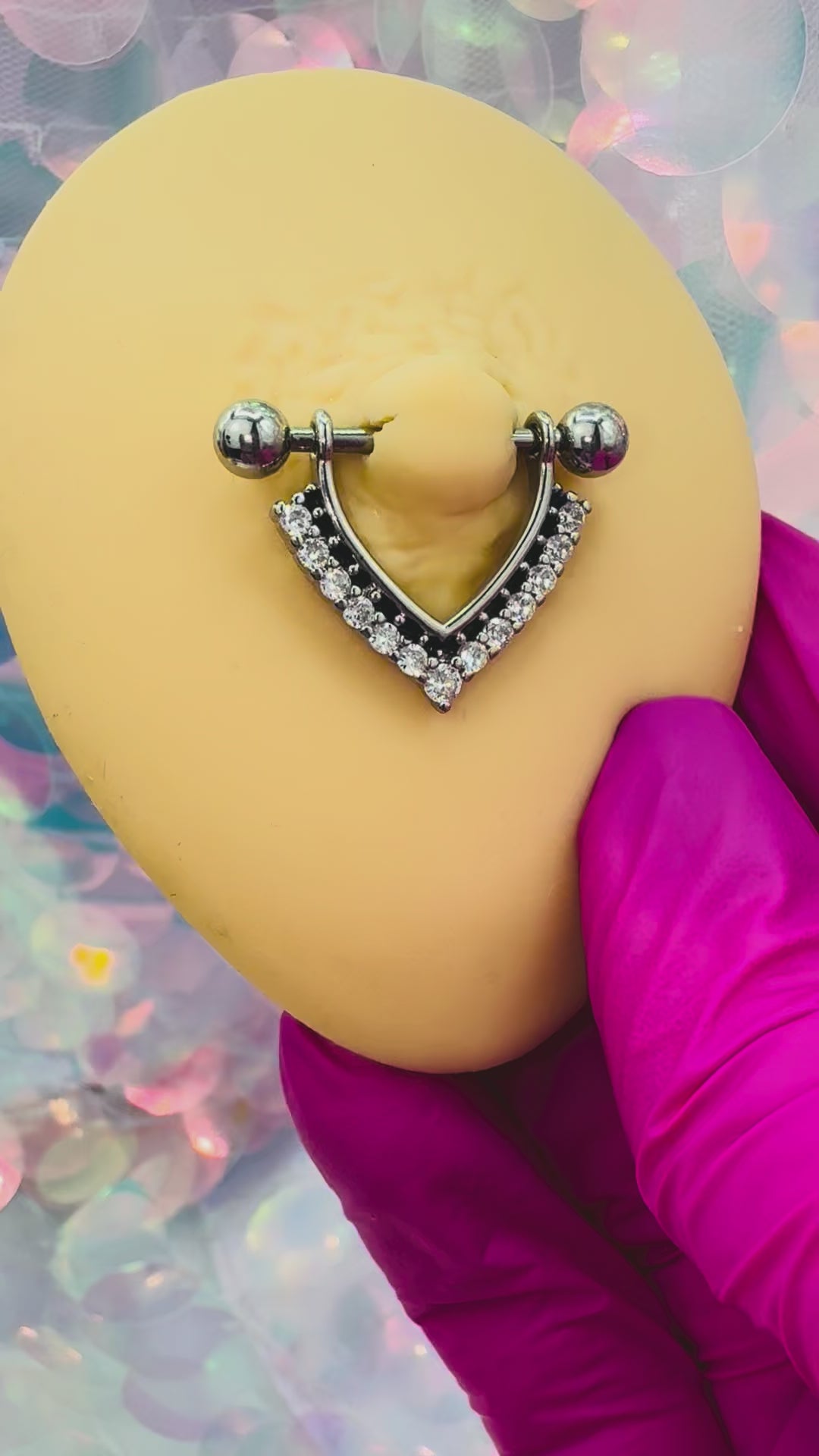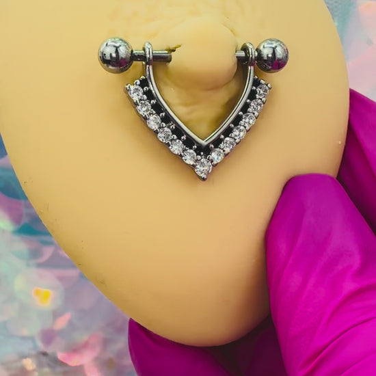 CHEVRON CRYSTAL LINED NIPPLE BARBELL - 14MM