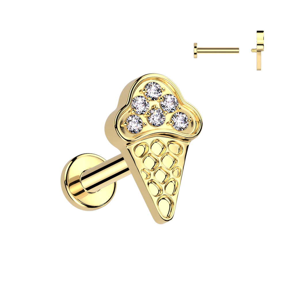 TITANIUM ICE CREAM CONE CRYSTAL FLAT BACK LABRET - 8MM