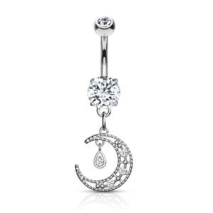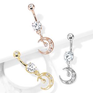 CRESCENT MOON CHARM DANGLE BELLY RING BARBELL