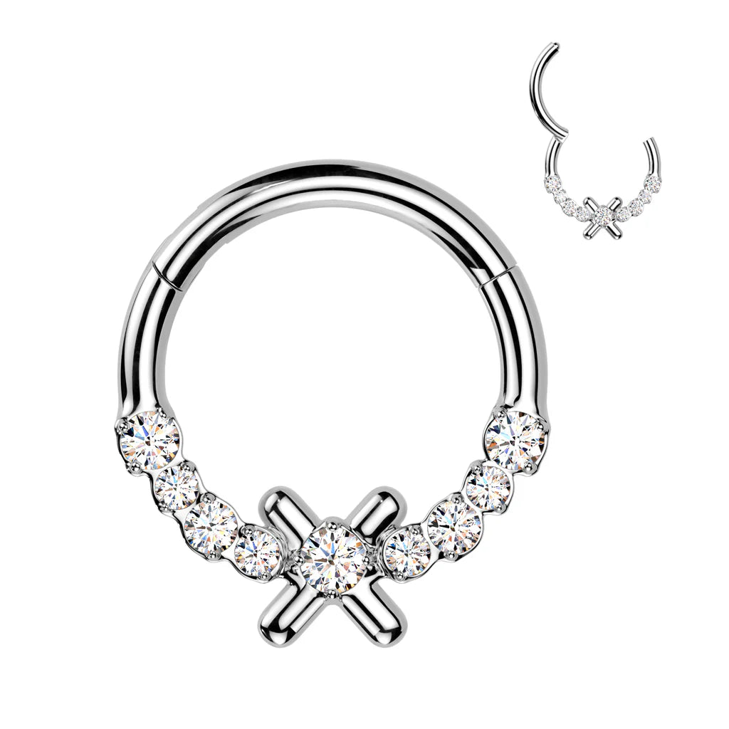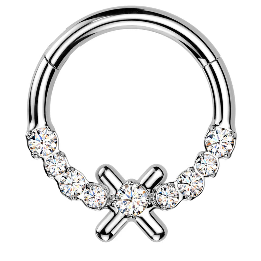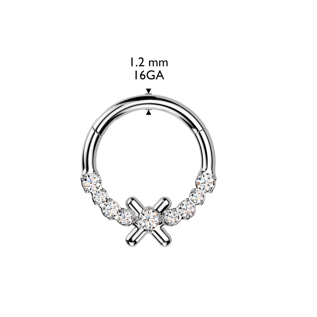 CRYSTAL CROSS HINGE HOOP - 10MM - 16 GAUGE