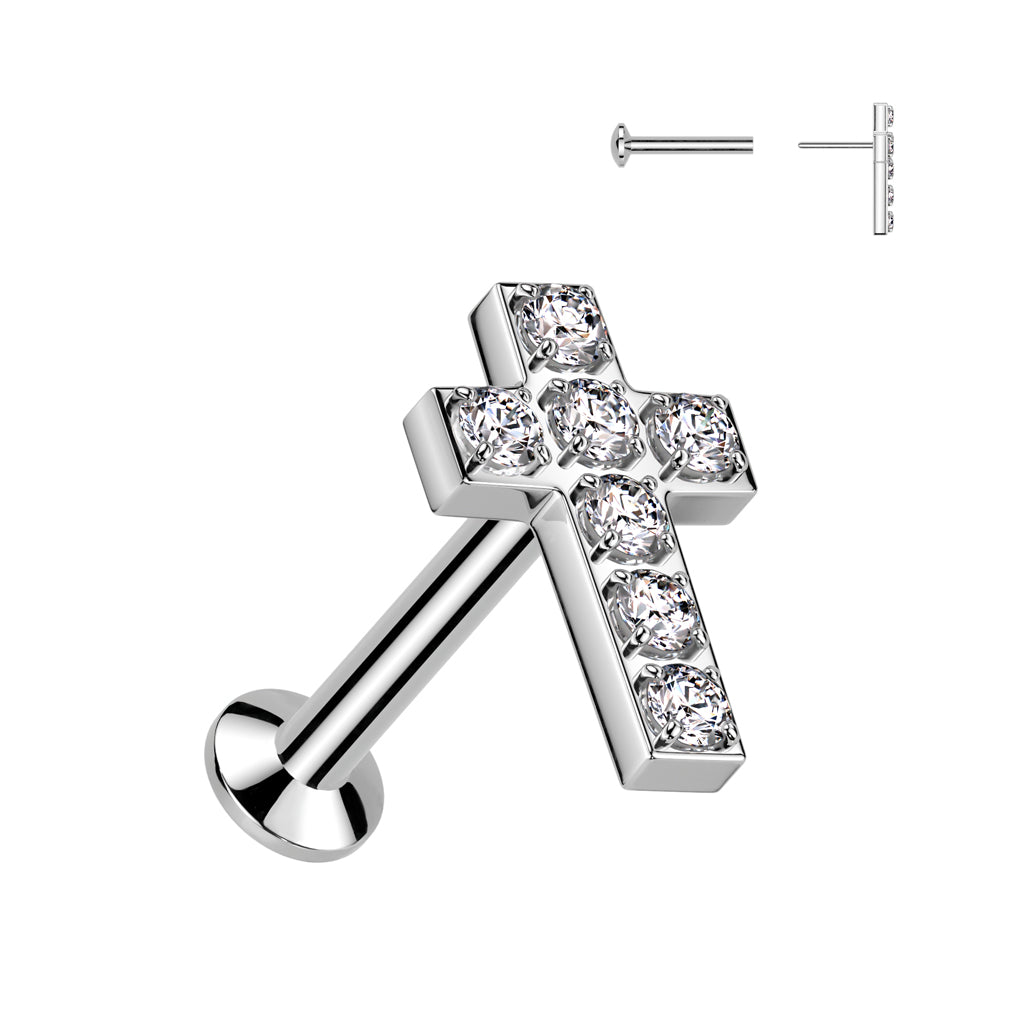 CRYSTAL CROSS THREADLESS FLAT BACK LABRET STUD - 8MM