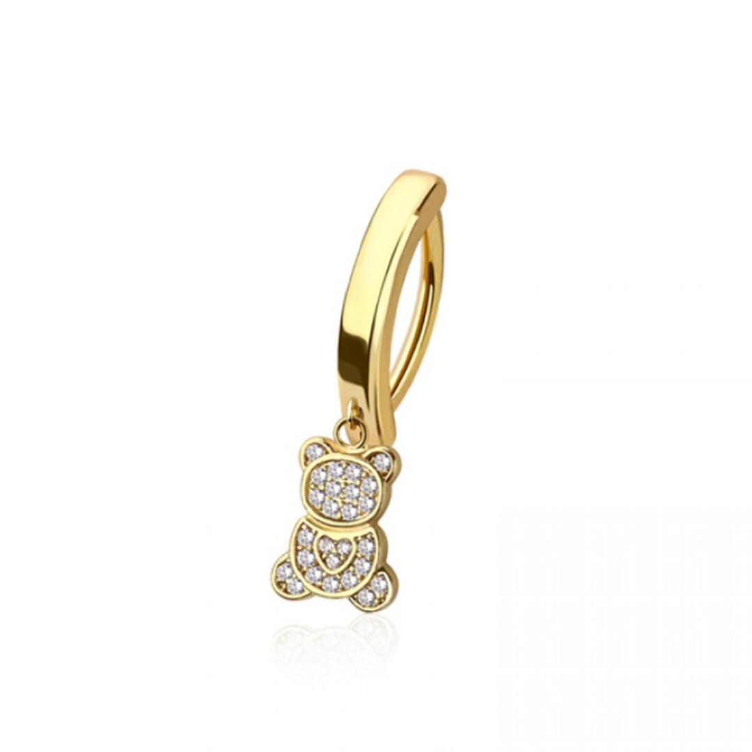CRYSTAL CUTE TEDDY BEAR CHARM BELLY CLICKER HOOP - 10MM