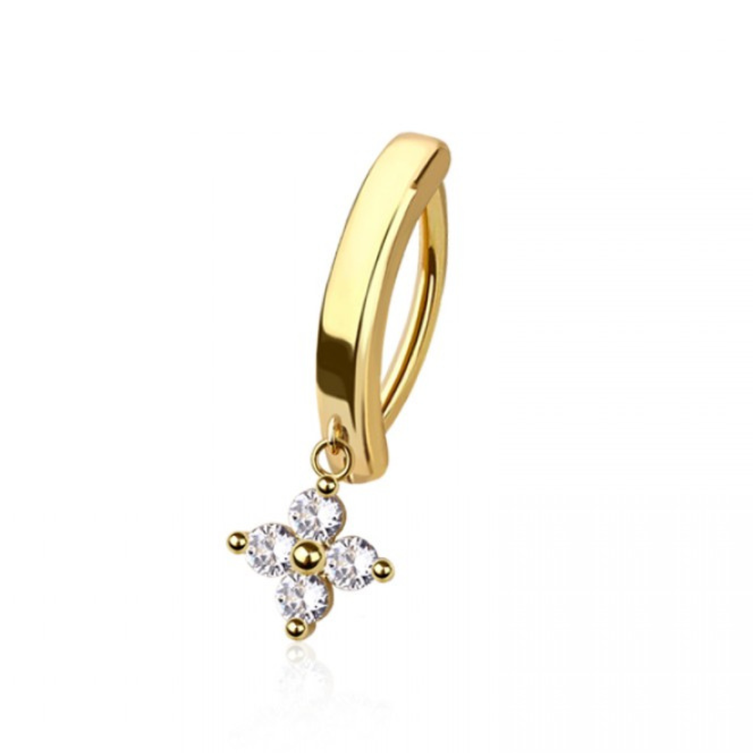 CRYSTAL FLOWER CHARM BELLY CLICKER HOOP - 10MM