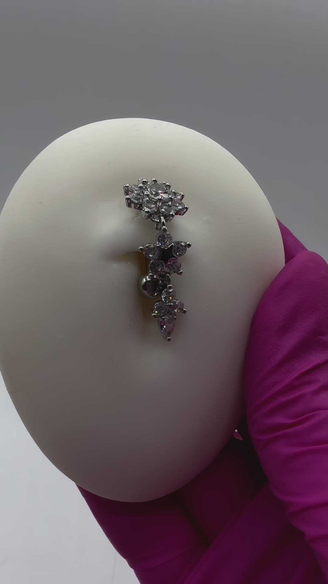 CRYSTAL FLOWER DANGLE REVERSE BELLY BAR - 10MM