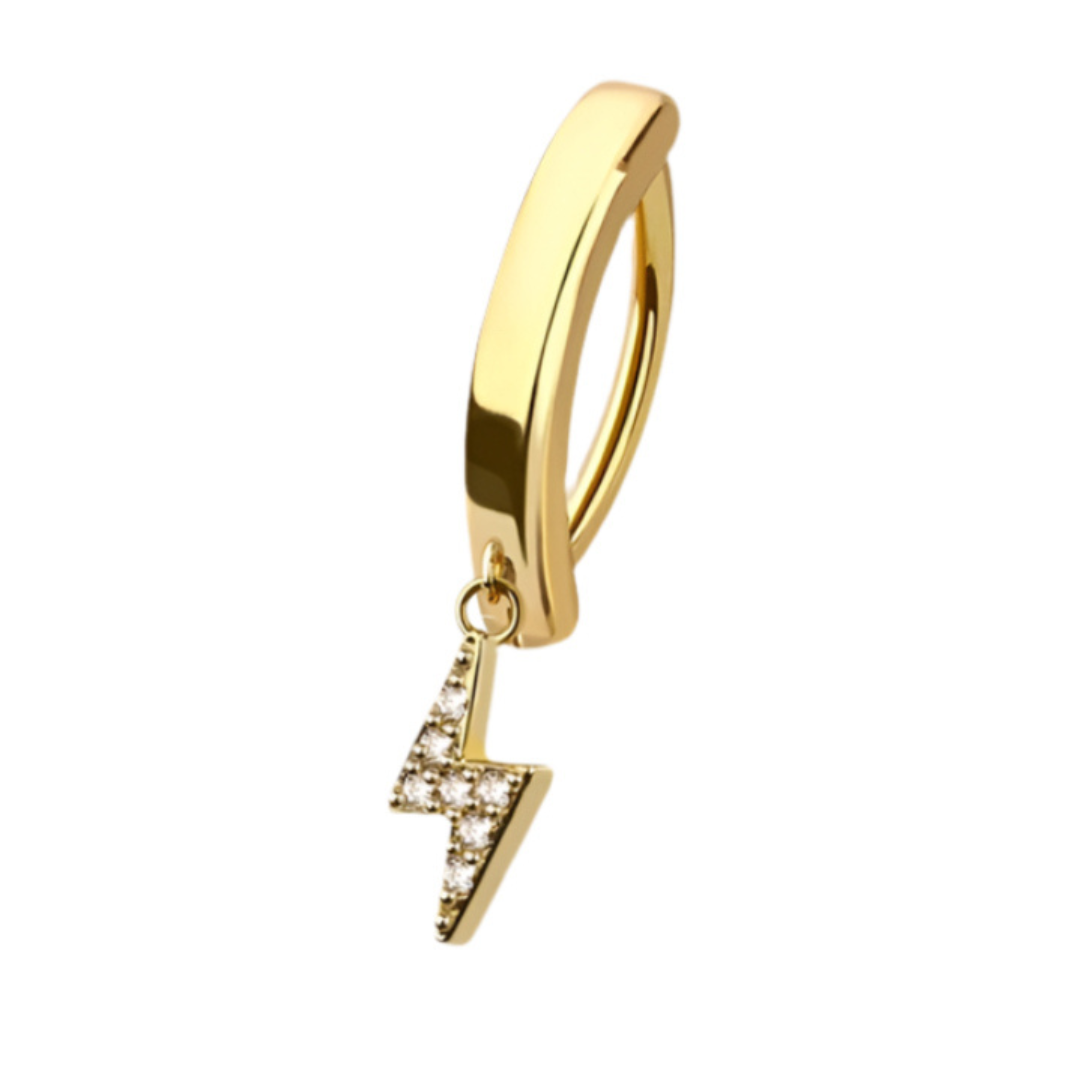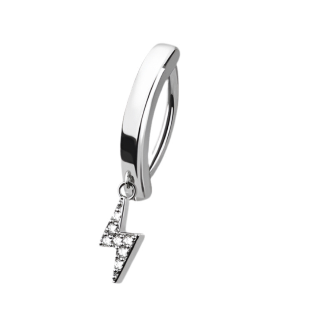 CRYSTAL LIGHTENING BOLT CHARM BELLY CLICKER HOOP - 10MM