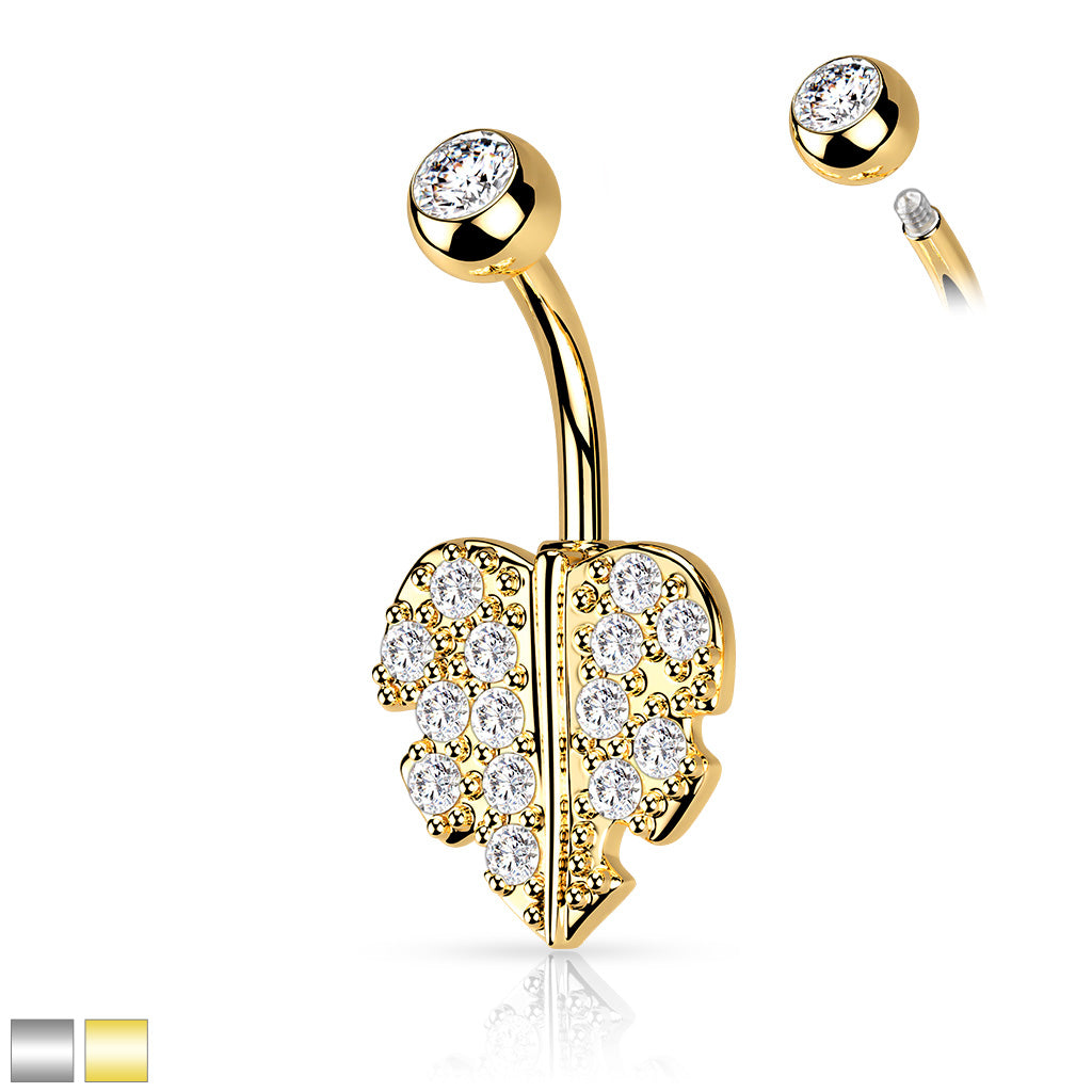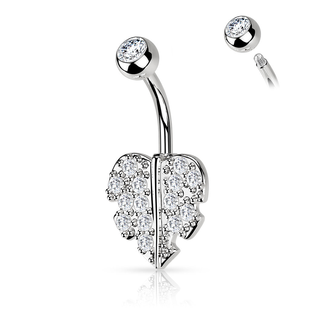 CRYSTAL PALM TREE LEAF BELLY BAR - 10MM - 14 GAUGE