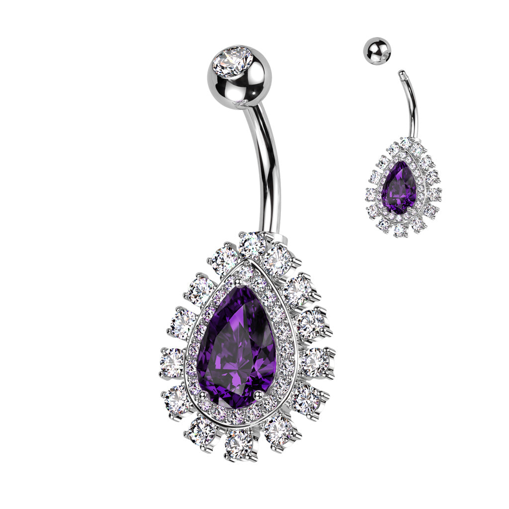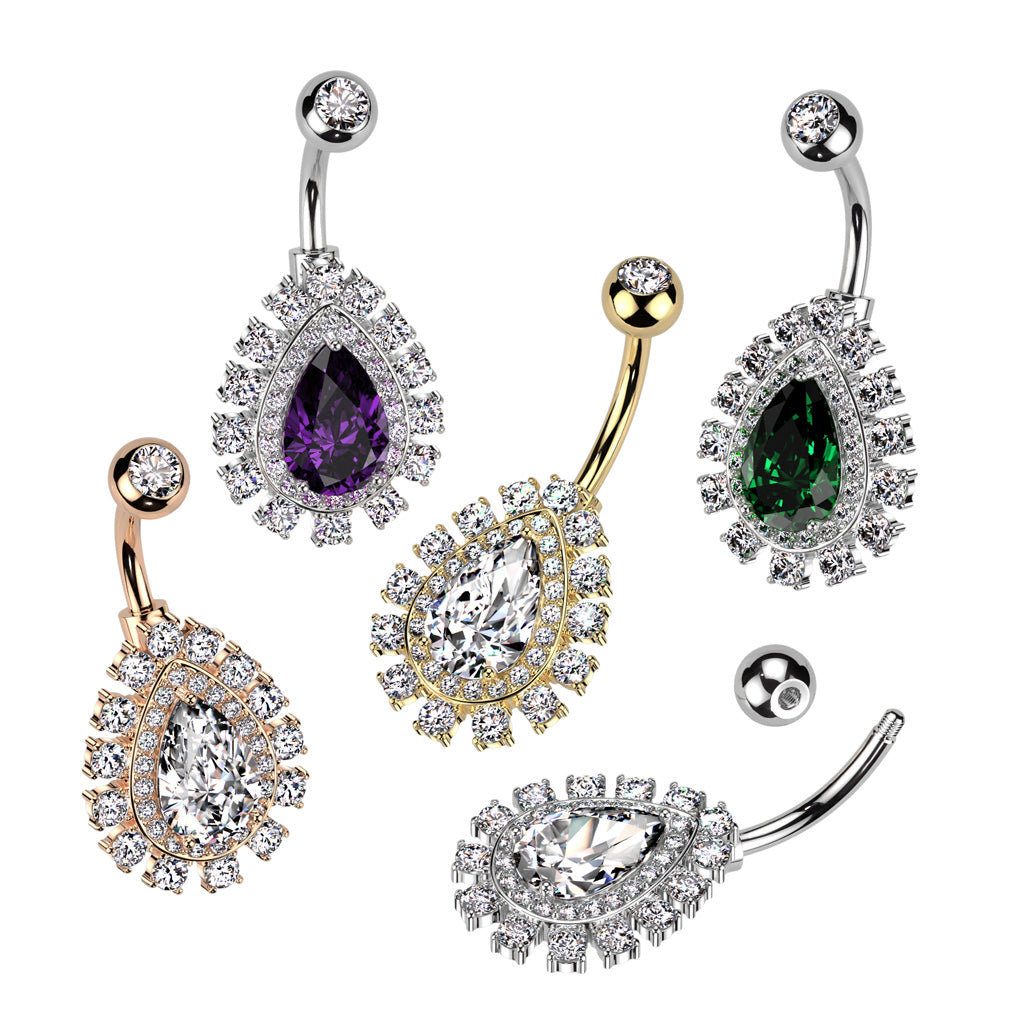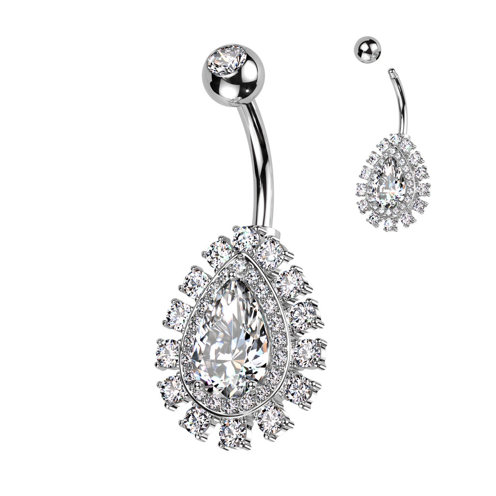 CRYSTAL TEARDROP CLUSTER BELLY BAR - 14 GAUGE - 10MM