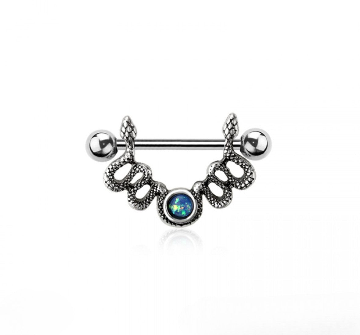 DOUBLE SNAKE OPAL NIPPLE BARBELL - 14 GAUGE - 14MM
