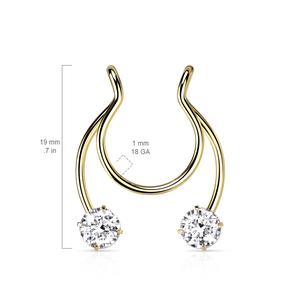 Fake Clip on Horseshoe with Forward Facing Prong Set CZ for SeptumMaterial: 316L Surgical SteelPlating: PVDNo piercing required