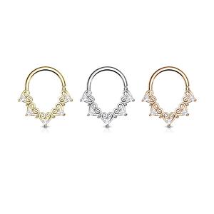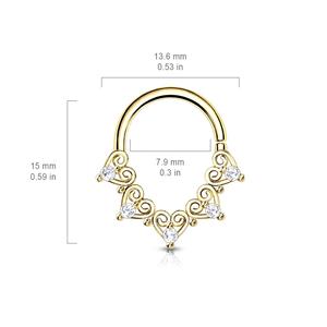 Filigree with Mini CZ Details Bendable Hoop for Daith, Cartilage Septum and MoreMaterial - brass coated plt 14kt gold18 gauge 8mmBendable hoop open & close