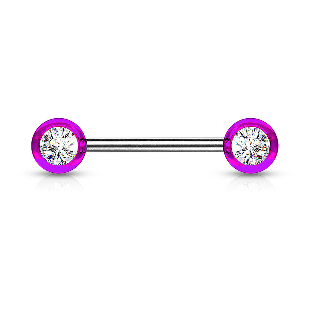 PURPLE CRYSTAL CENTRE STRAIGHT BARBELL - 16MM - 14 GAUGE