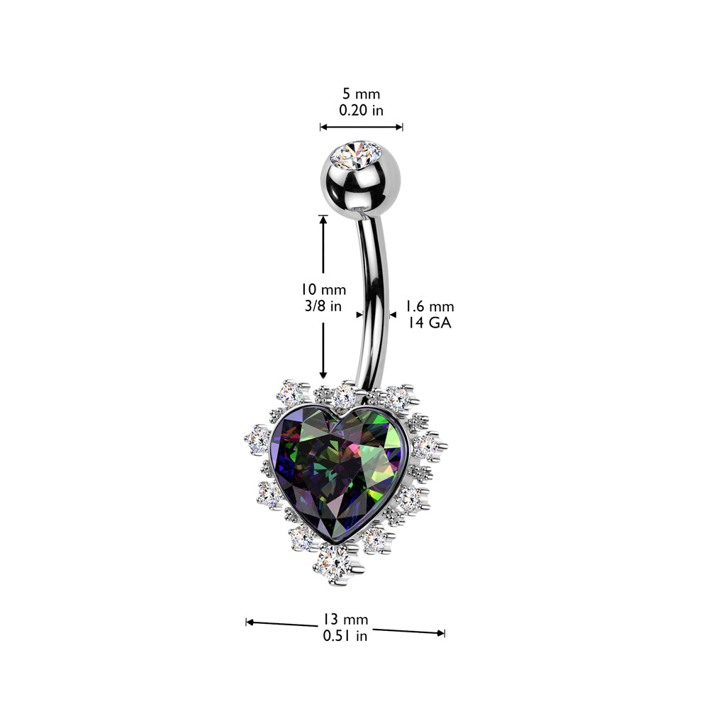 RAINBOW VITRAIL CRYSTAL LOVE HEART BELLY BAR - 10MM - 14 GAUGE