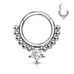 High Quality Precision All 316L Surgical Steel Hinged Segment Hoop Rings with Front Facing Star Prong set CZ with beadsMaterial - surgical steelThickness - 16 gaugeLength - 8mm