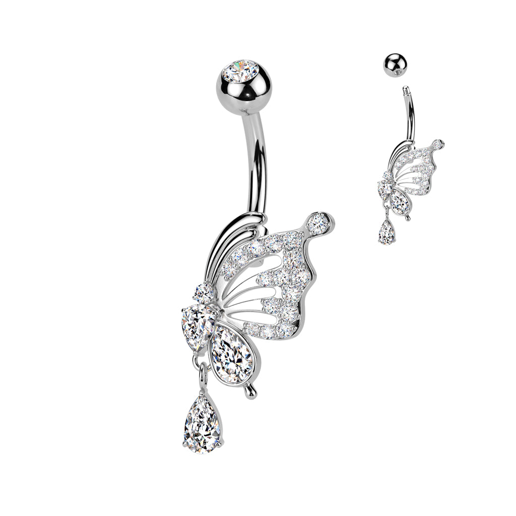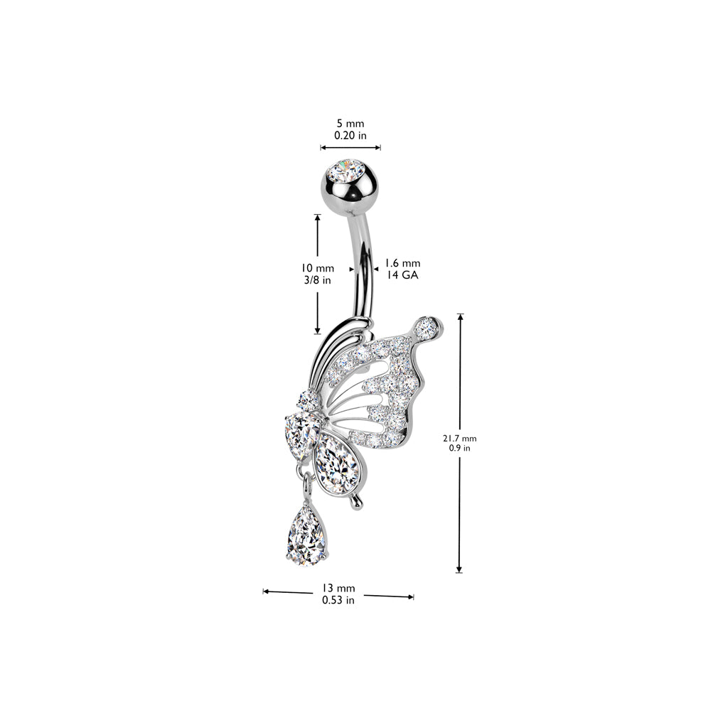 SPARKLY BUTTERFLY CRYSTAL WING BELLY BAR - 14 GAUGE - 10MM