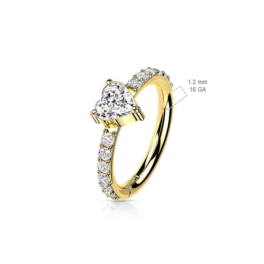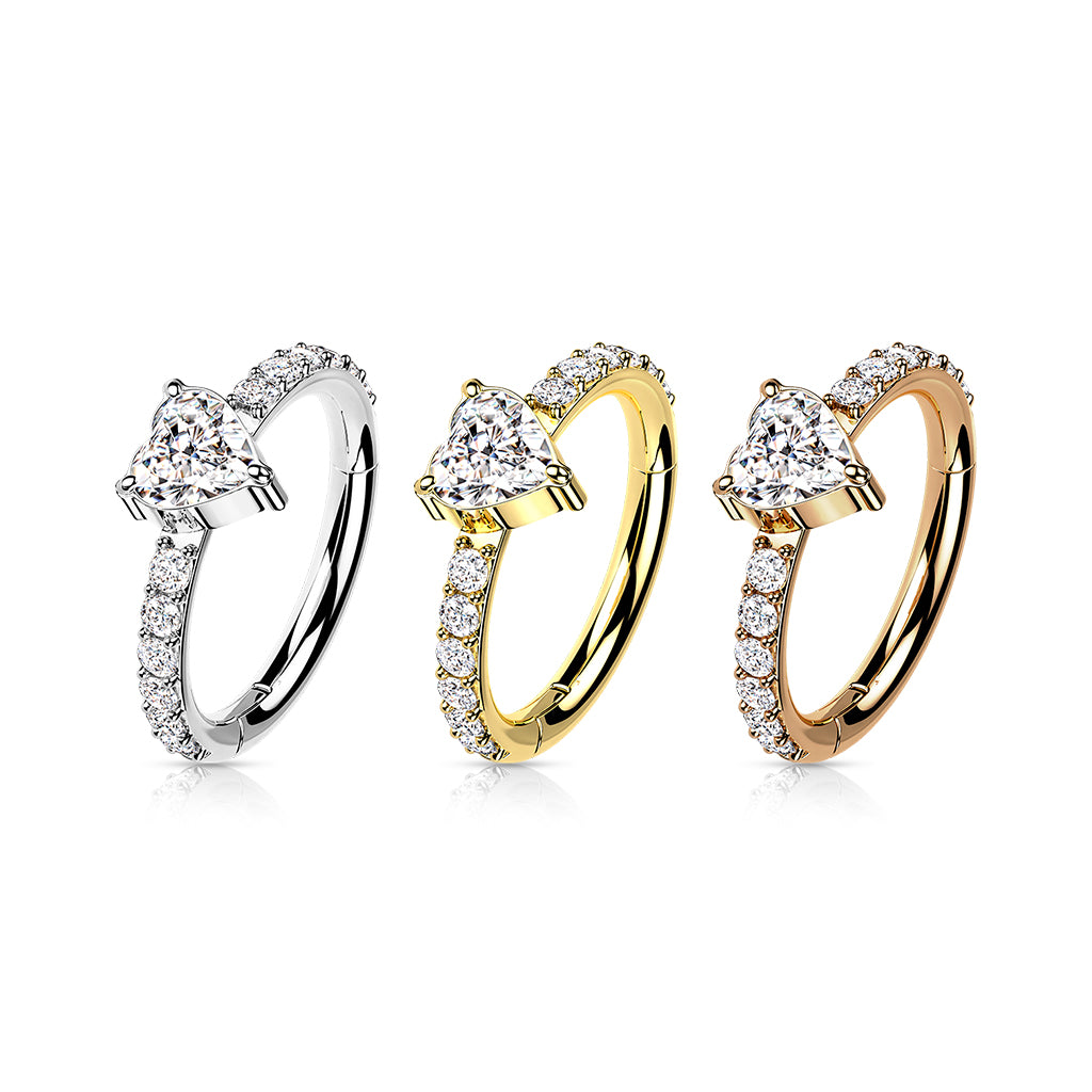 Implant Grade Titanium Hinged Segment Hoop Ring With CZ Heart Center and Pave CZ SidesMaterial - titanium Thickness - 16 gauge 1.2mmLength - 10mm