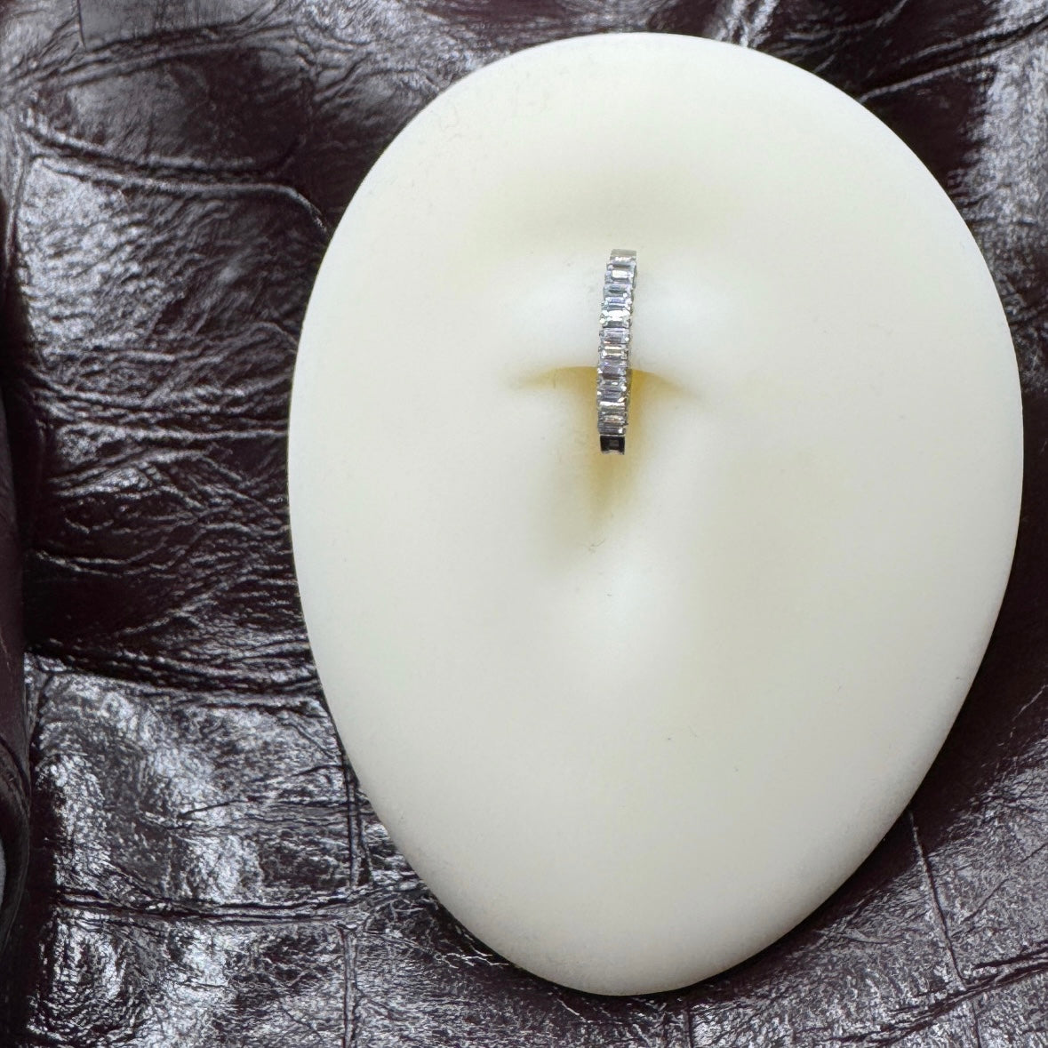 Introducing the Titanium Crystal Lined Belly Ring - the perfect blend of safety and style! Made with top-quality TITANIUM 6AL-4V-ELI ASTM F-136 material, this ring is designed to offer you utmost safety and ease of use. The ring comes with a hinged hoop that is CNC set with CZ, giving it a chic and stylish look that's bound to turn heads.