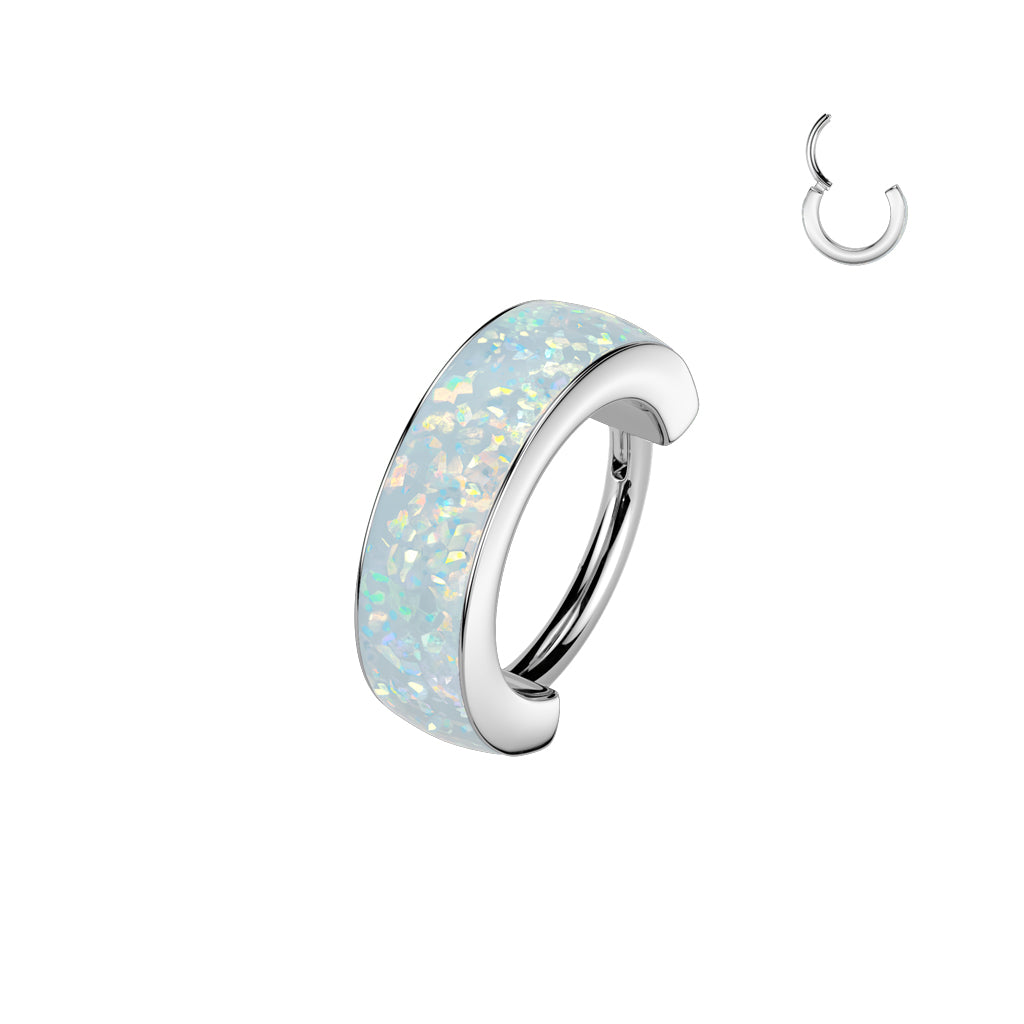 TITANIUM CHUNKY WHITE OPAL HINGE CLOSE FASTENING HOOP FOR NOSE & EAR - 20 GAUGE 8MM