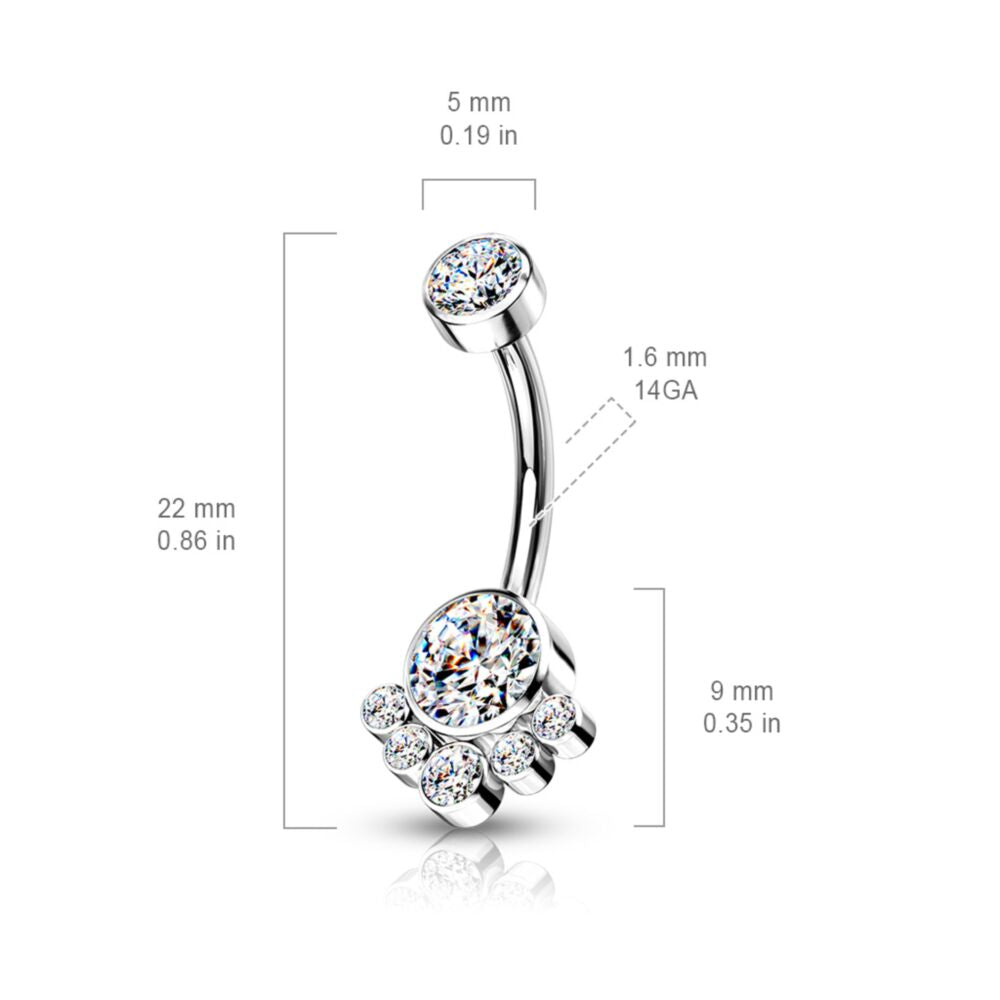 TITANIUM CRYSTAL CLUSTER BELLY BARBELL - 10MM