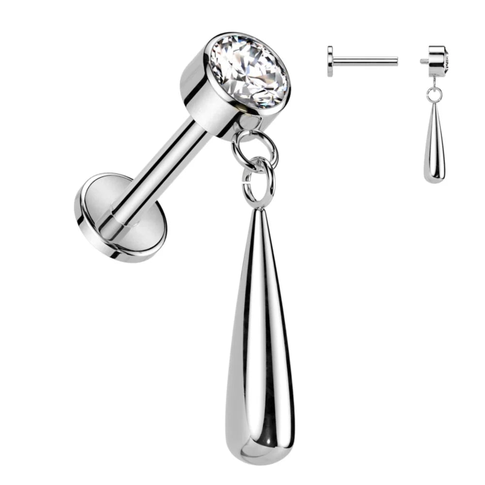 But what really sets this labret apart is its stunning design. The bezel set CZ top sparkles brilliantly in the light, drawing attention to your facial features. And the teardrop dangle adds a touch of elegance and sophistication to your look.