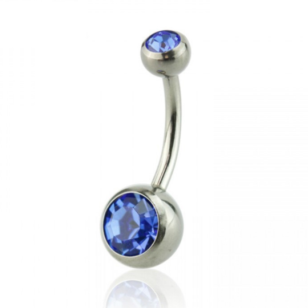 TITANIUM DAINTY DOUBLE CRYSTAL BLUE BELLY BAR - 8MM - 14 GAUGE