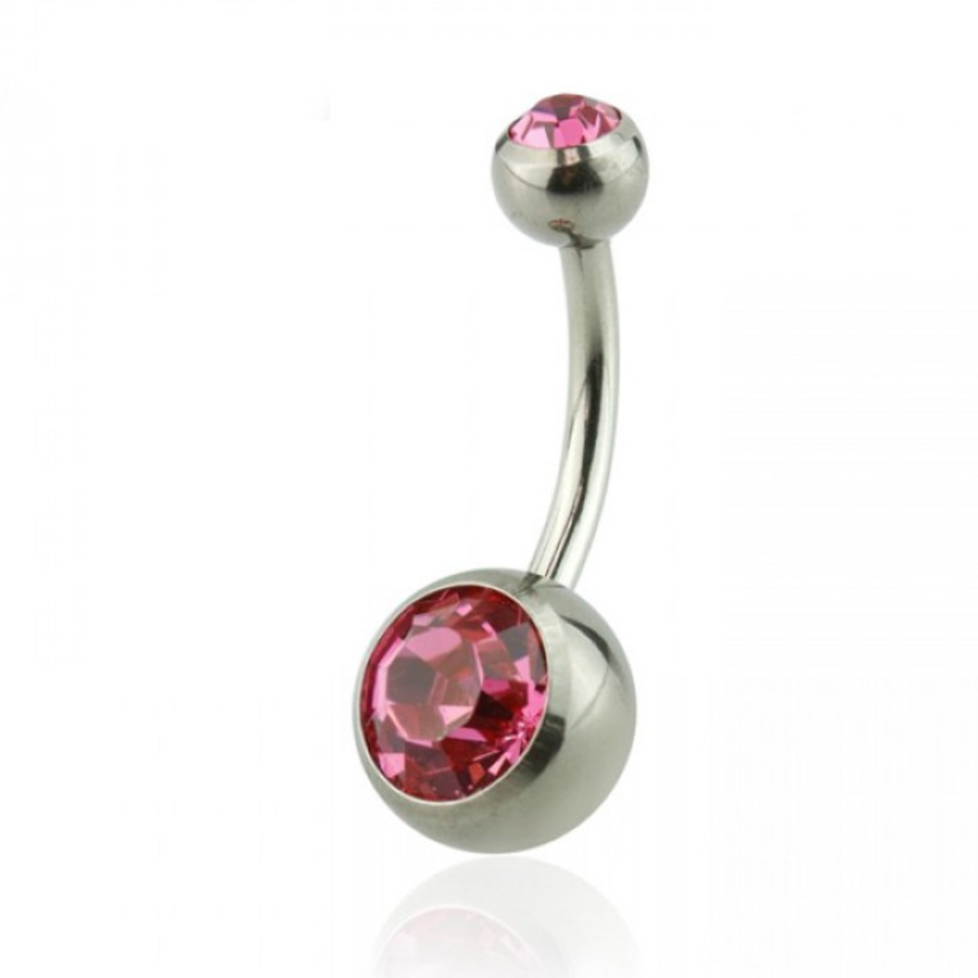 TITANIUM DAINTY DOUBLE CRYSTAL PINK BELLY BAR - 8MM - 14 GAUGE