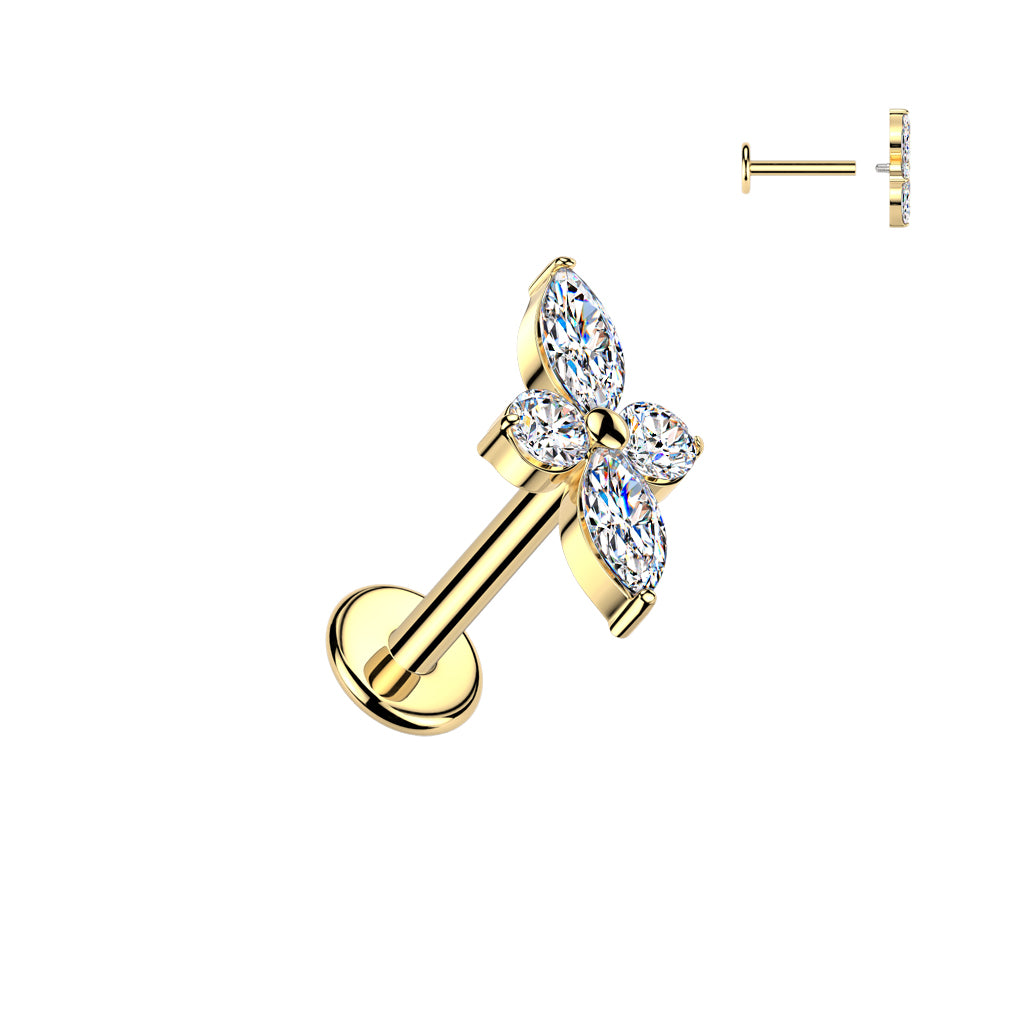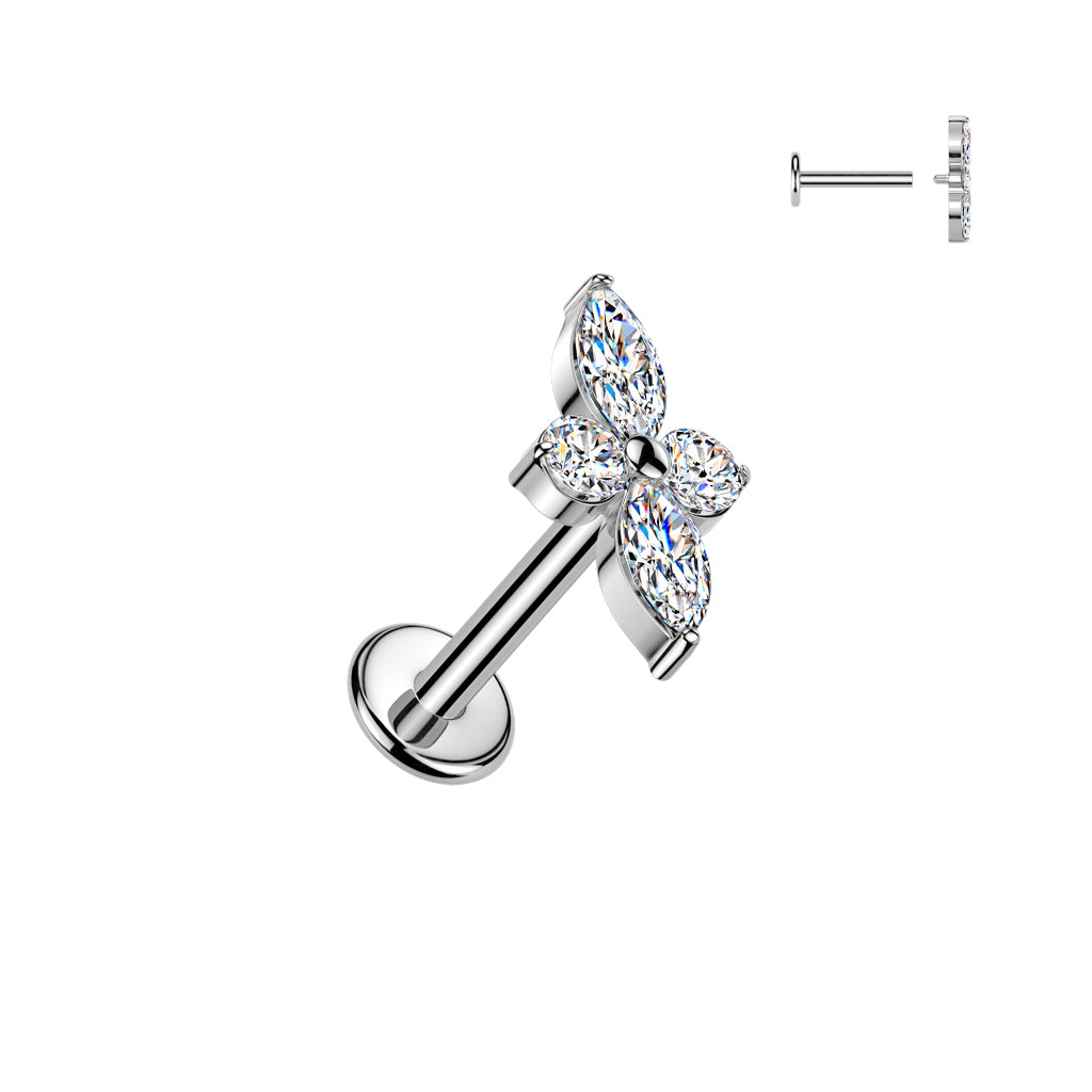TITANIUM MARQUISE FLOWER LEAF FLAT BACK LABRET - 16 GAUGE - 6MM