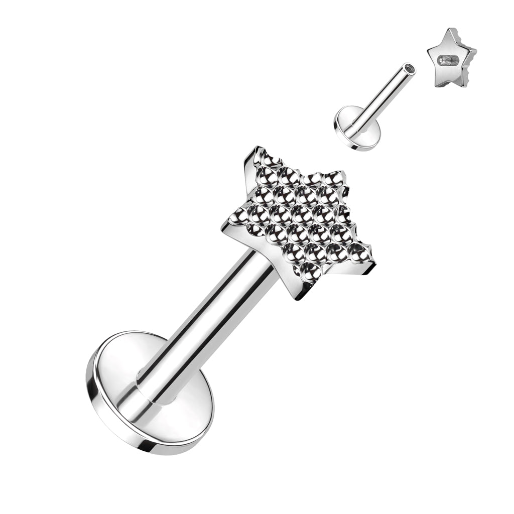 TITANIUM RIVET TOP STAR STUDDED FLAT BACK LABRET - 6MM - 16 GAUGE