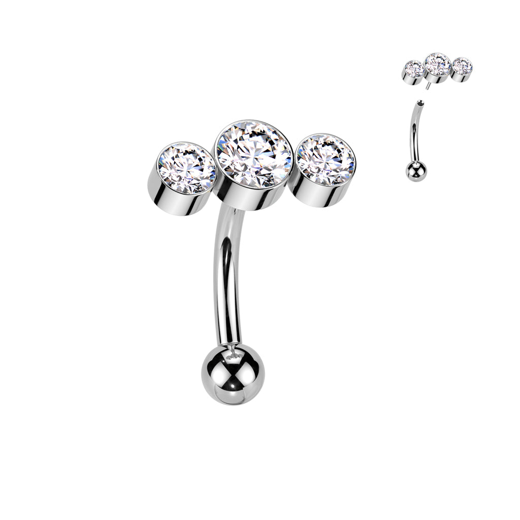 TITANIUM TRIPLE CRYSTAL CURVED 8MM THREADLESS BARBELL - 16 GAUGE