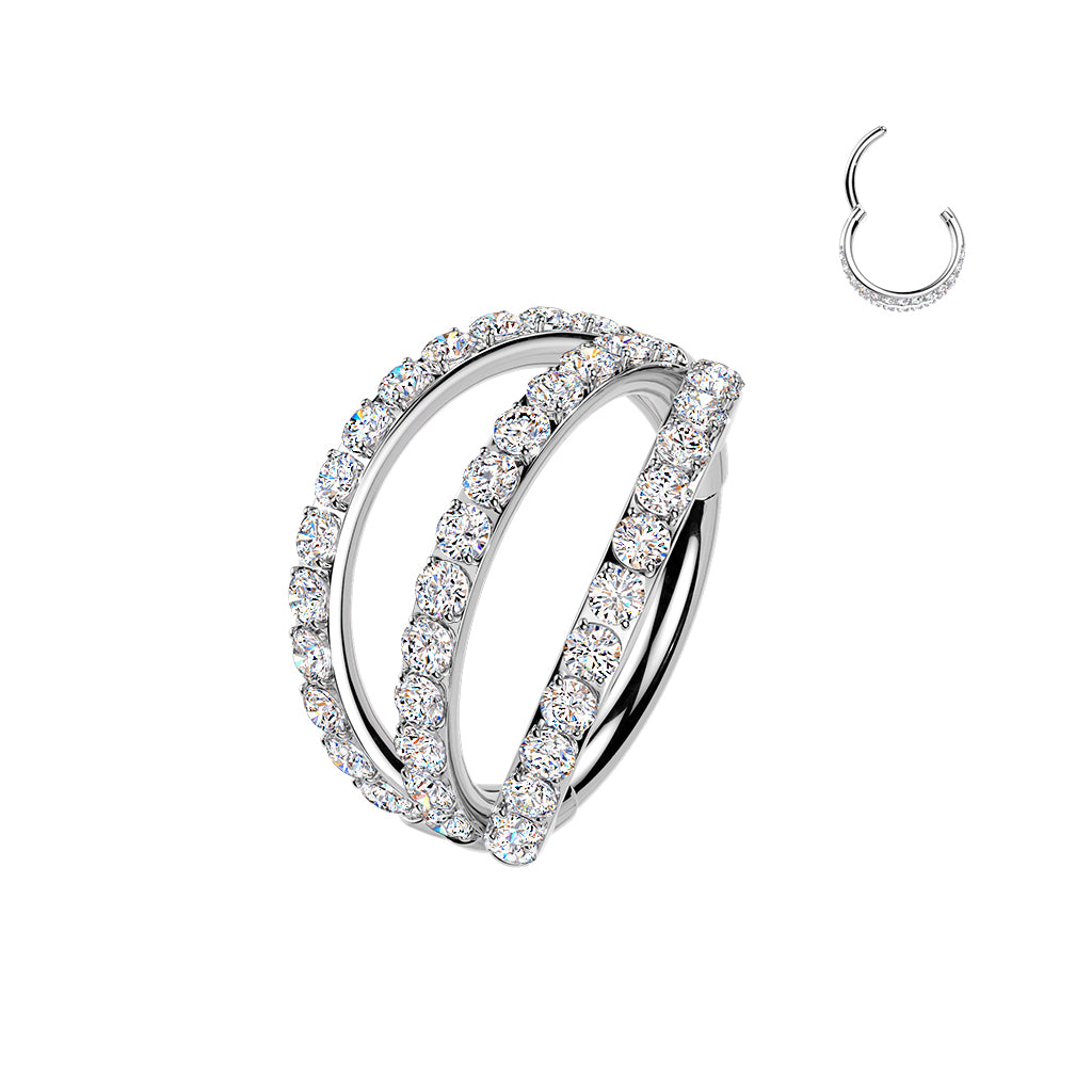 TITANIUM TRIPLE CRYSTAL LINED NOSE RING / EAR HOOP - 7MM - 20 GAUGE