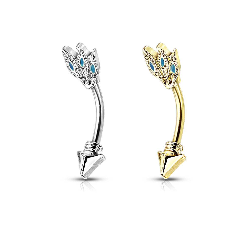 TRIBAL TURQUOISE ARROW CURVED BARBELL - 8MM - 16 GAUGE