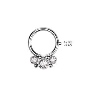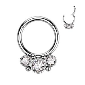 TRIPLE CRYSTAL HOOP - HINGE CLOSE FASTENING - 8MM