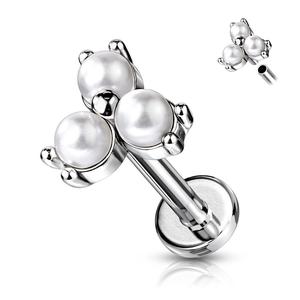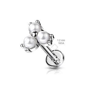 TRIPLE PEARL FLATBACK LABRET STUD