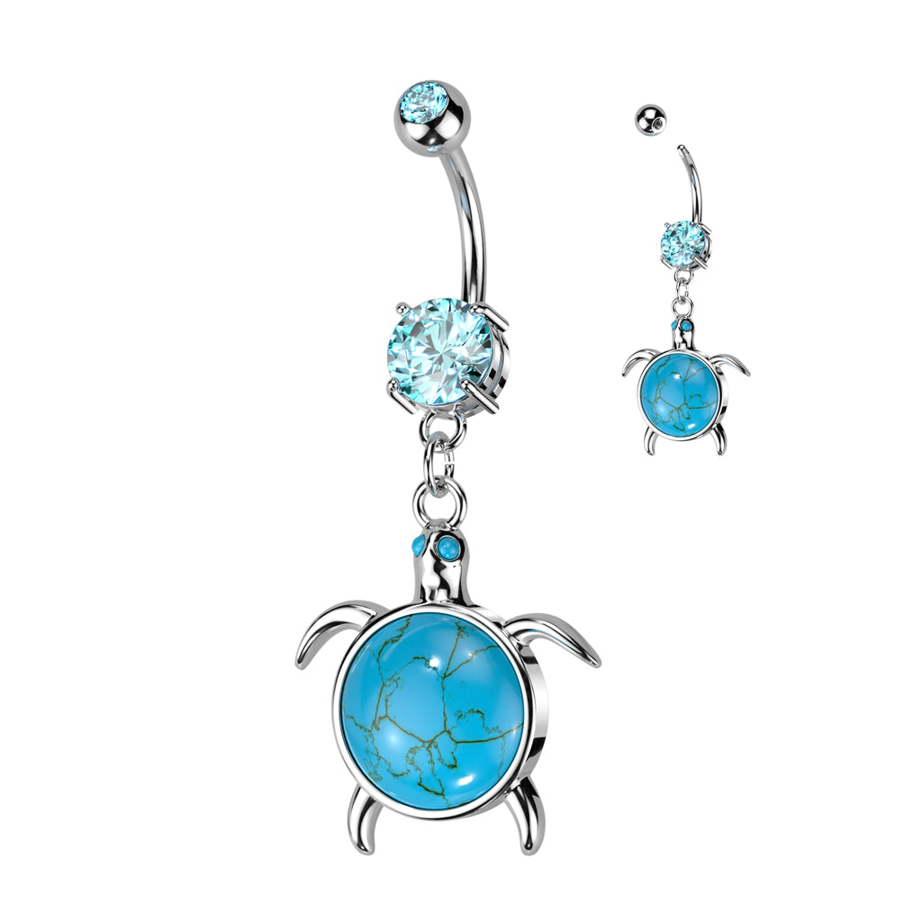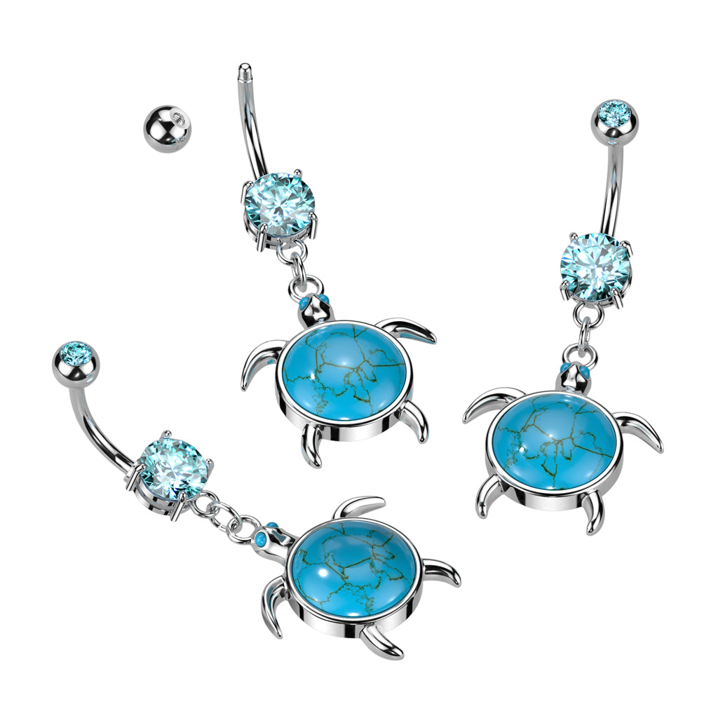 TURQUOISE TURTLE CHARM BELLY BAR - 10MM - 14 GAUGE